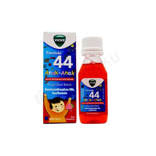 Vicks Formula 44 Anak adalah obat batuk yang dapat diberikan pada anak yang mengalami batuk kering dan batuk berdahak.