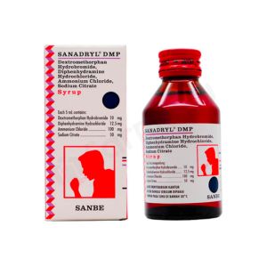 Sanadryl DMP adalah obat batuk sirup yang bermanfaat untuk mengatasi batuk kering akibat alergi. Obat ini mengandung dextromethorphan hydrobromide, diphenhydramine hydrochloride, ammonium chloride, dan sodium citrate. Kombinasi kandungan tersebut bermanfaat untuk mengurangi keinginan serta frekuensi batuk.