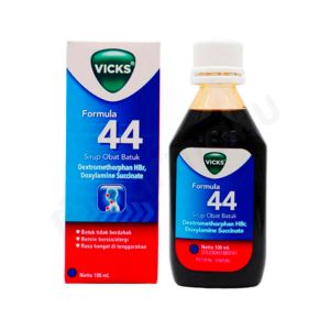 Vicks Formula 44 merupakan obat batuk sirup yang bermanfaat untuk meringankan batuk tidak berdahak yang disertai dengan bersin-bersin atau alergi. Obat ini mengandung dextromethorphan dan doxylamine.