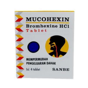 Rekomendasi obat batuk tablet selanjutnya adalah Mucohexin. Sama seperti obat di atas, Mucohexin mengandung bromhexine HCl sehingga dapat digunakan untuk kasus batuk berdahak.