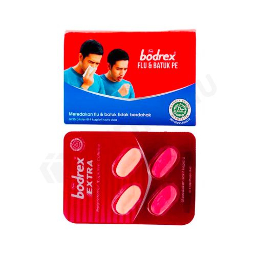 Bodrex Extra merupakan obat yang mengandung paracetamol, ibuprofen, dan kafein. Obat ini bermanfaat untuk menurunkan suhu tubuh, mengatasi nyeri akibat sakit gigi, menstruasi, dan pegal-pegal akibat flu.