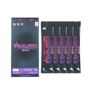 Onmen mengandung ginseng merah korea, cordyceps, dan guarana. Kombinasi kandungan ini bermanfaat untuk membantu menjaga stamina pria, meningkatkan gairah seksual, serta menjaga kualitas ereksi.