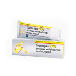 Counterpain PXM merupakan obat dalam bentuk krim dengan kandungan piroxicam, methyl salicylate, menthol, dan eugenol. Obat ini bermanfaat untuk meredakan gejala radang pada sendi, kemerahan, bengkak, nyeri, dan kaku sendi.