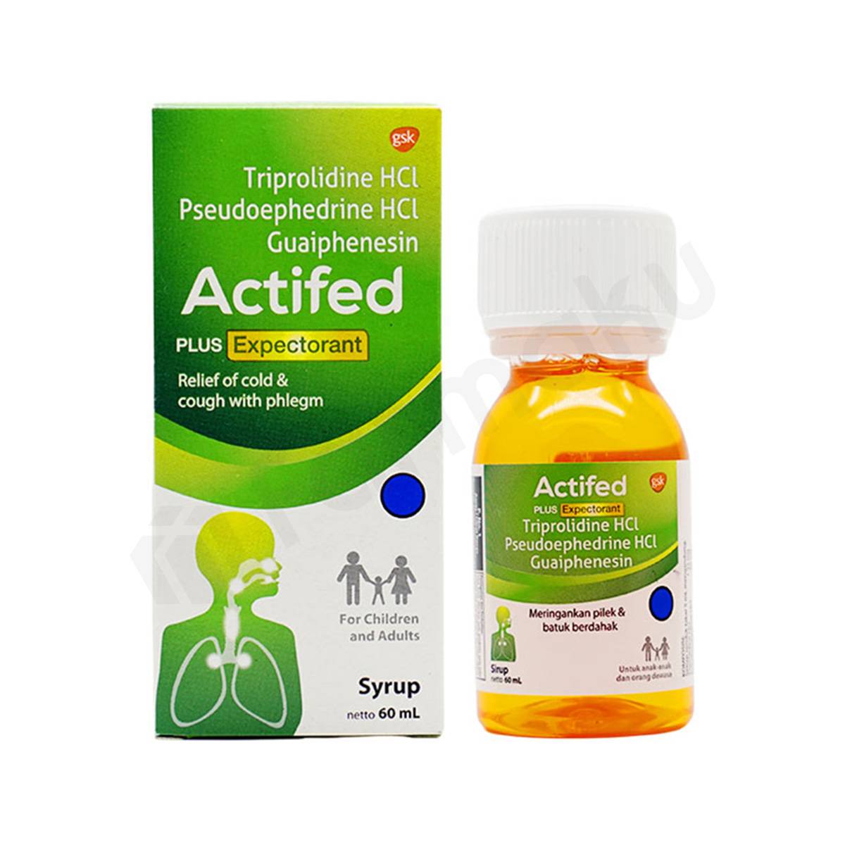 Actifed Plus Expectorant mengandung guaifenesin yang berperan sebagai ekspektoran untuk membantu mengencerkan dahak.