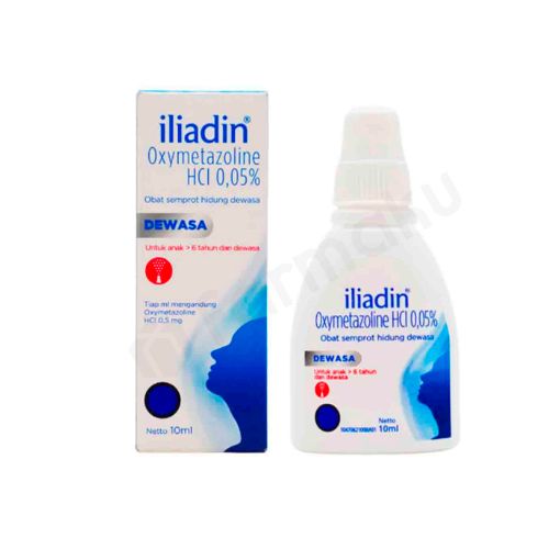 Iliadin nasal spray merupakan obat dalam bentuk semprot hidung. Obat ini bermanfaat untuk membantu mengatasi hidung tersumbat akibat flu atau alergi saluran pernapasan atas.