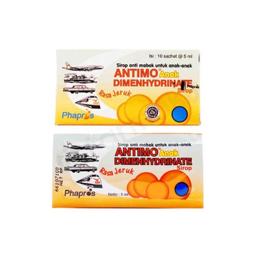 Antimo mengandung dimenhidrinat, yaitu antihistamin yang mampu mengurangi perasaan pusing dan mual akibat mabuk perjalanan. Obat ini dianjurkan untuk diminum satu jam sebelum bepergian dan sesudah makan.