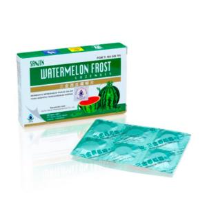 Sanjin Watermelon Frost Lozenges merupakan obat herbal yang bermanfaat untuk meredakan rasa tidak nyaman pada sakit tenggorokan susah menelan. Kandungan dalam obat ini ampuh untuk mengurangi rasa sakit dan peradangan, sehingga tenggorokan jadi lebih nyaman.