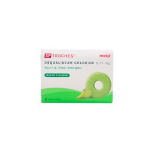 Sp Troches hadir dalam bentuk tablet hisap dengan tiga varian rasa, yaitu stroberi, melon, dan mint. Obat ini mengandung dequalinium chloride yang ampuh untuk membunuh kuman dan virus penyebab sakit tenggorokan susah menelan.