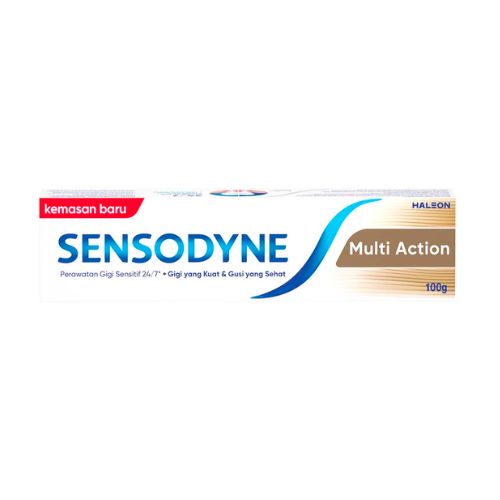 Sensodyne Multi Action bermanfaat untuk meredakan gigi sensitif, sekaligus mencegah gigi berlubang, mengurangi timbunan plak, dan menjaga gusi tetap sehat.