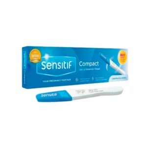 Sensitif Compact merupakan alat uji kehamilan yang bekerja dengan cara mendeteksi hormon hCG yang meningkat di awal kehamilan. Alat ini memiliki tingkat akurasi hingga 99%.