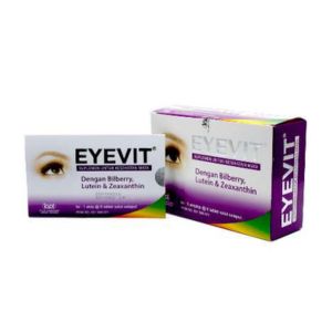 Suplemen mata Eyevit ini mengandung sejumlah vitamin yang dapat menjaga kesehatan mata. Kandungan yang terdapat di dalamnya meliputi, ekstrak bilberry kering, vitamin E, zinc, selenium, retinol, beta karoten, lutein, dan zeaxanthin.