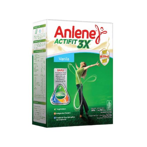 Anlene Actifit 3X adalah susu bubuk yang mengandung kalsium tinggi dan rendah lemak untuk menutrisi tulang, sendi, dan otot sehingga kerjanya menjadi optimal. Pada gilirannya, hal ini dapat membantu tubuh tumbuh tinggi.
