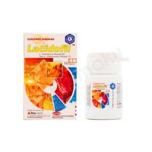 Lacidofil merupakan suplemen probiotik untuk anak yang hadir dalam bentuk kapsul. Produk ini mengandung bakteri baik Lactobacillus rhamnosus dan Lactobacillus helveticus